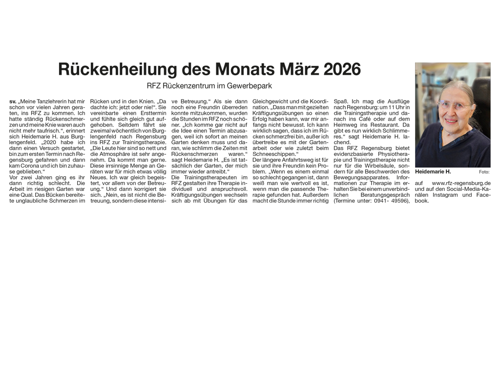 Ein Leistungsmerkmal ist für alle Bereiche gleichermaßen verbindlich, die RFZ - Qualitäts - Garantie. Und das gilt nicht nur für den Rücken, sondern für alle Beschwerden des Bewegungsapparates.
